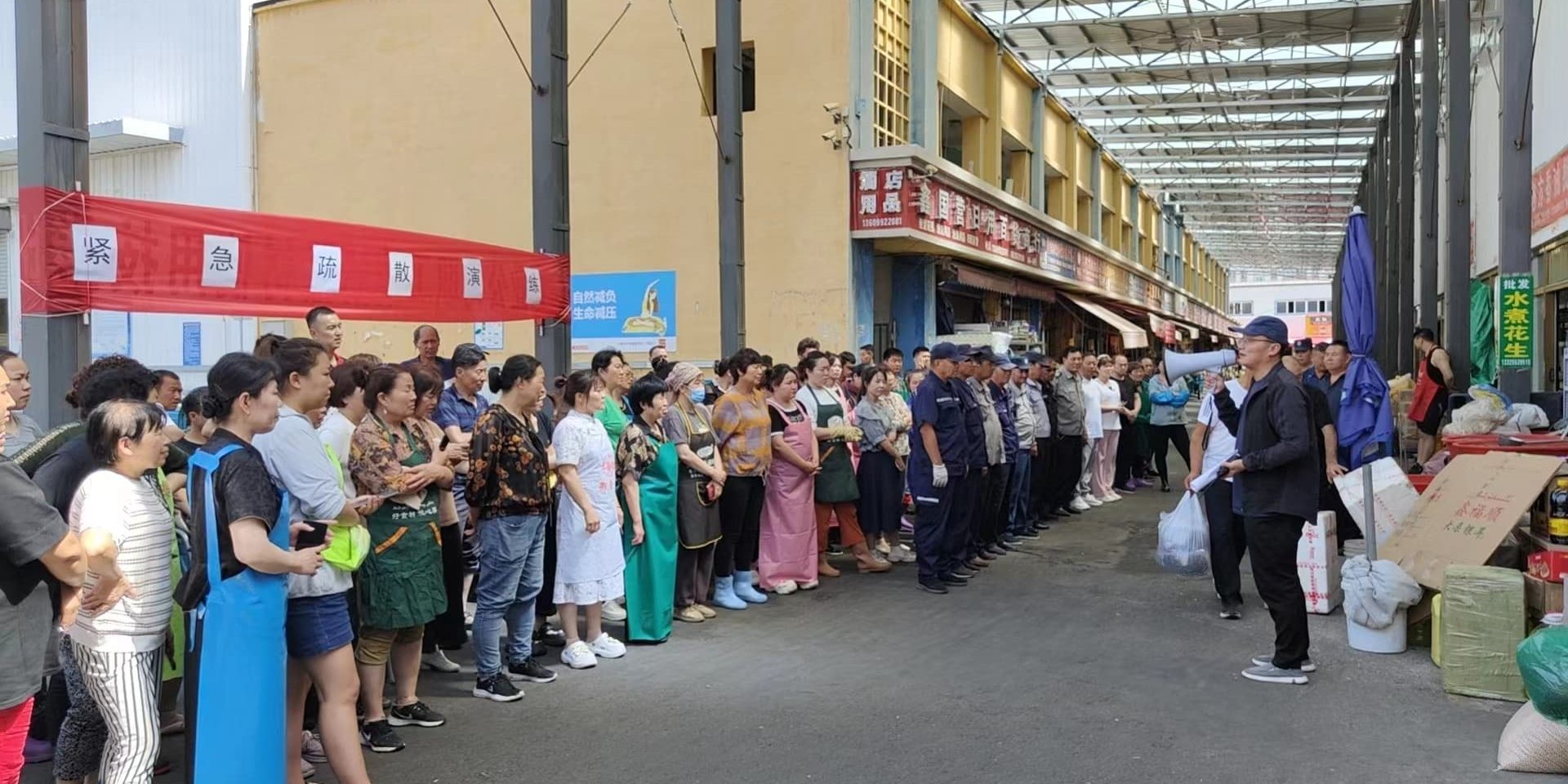 6月25日下午,北园春果业公司按照安全生产月活动安排,组织北园春市场副食综合交易区P2大棚从业人员进行紧急疏散演练。本次演练主要目的是提高从业人员在经营场所发生紧急情况时自我防护,快速疏散到安全区域,达到紧急避险目的。