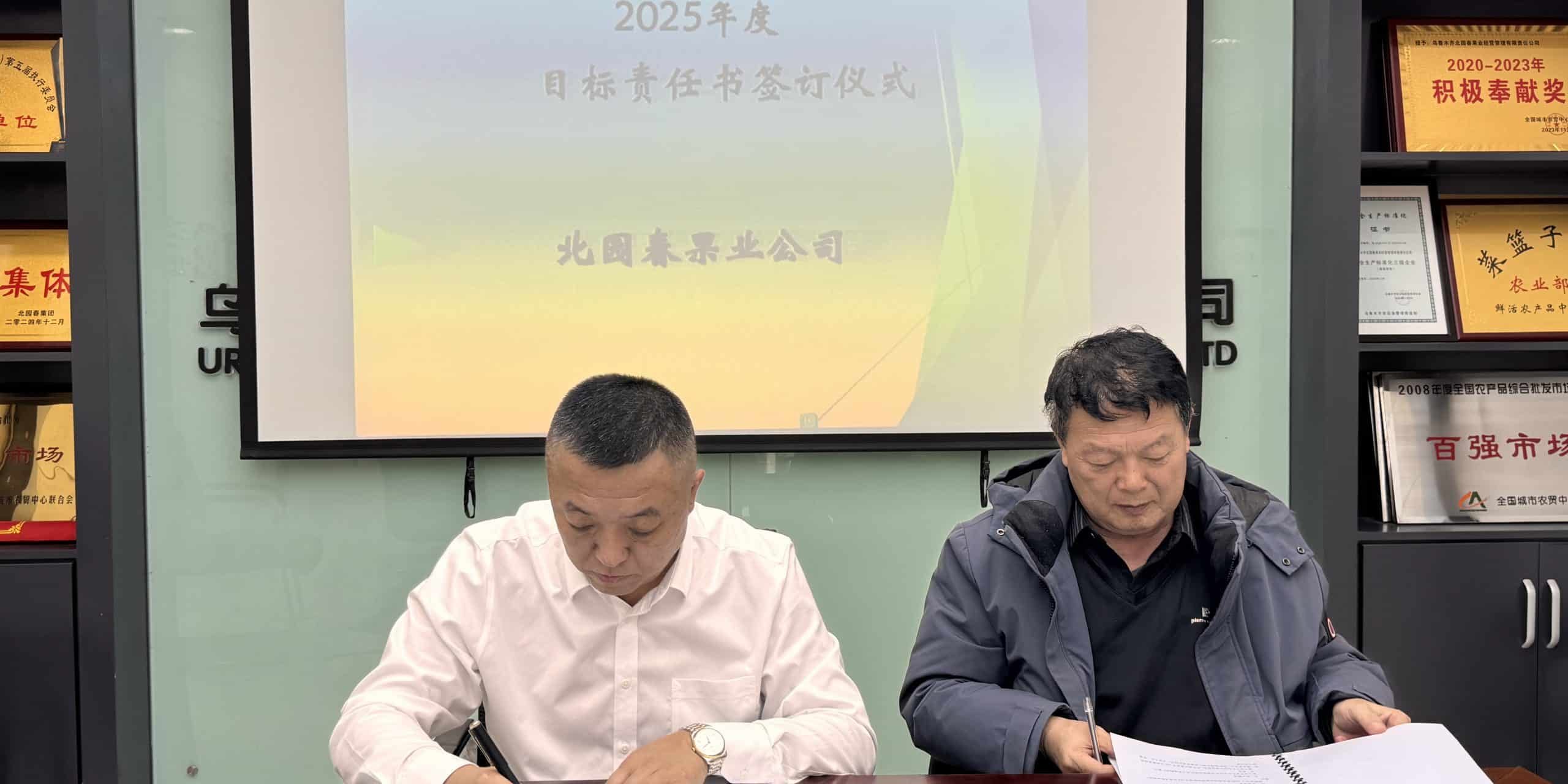 全面启动年度重点工作,确保2025年公司各项管理目标及工作指标高效、顺利完成。为进一步明确责任目标,细化工作举措,强化监督管理,确保公司2025年各项工作落实到位,2月25日下午,北园春果业公司在三楼会议室召开2025年度目标责任书签订大会。