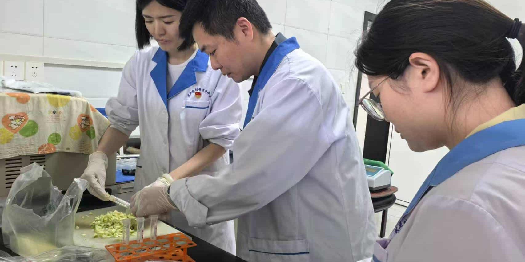 在检测样品过程中,技术研究所人员与市场检测人员相互切磋,共同研讨检测技术。其间,还深入了解了西北地区绿叶蔬菜易出现的问题。针对不同种类蔬菜的病虫害特性、自身品质以及生长期,对生产基地在生产过程中所采用的病虫害防治措施有了更深入的认识。