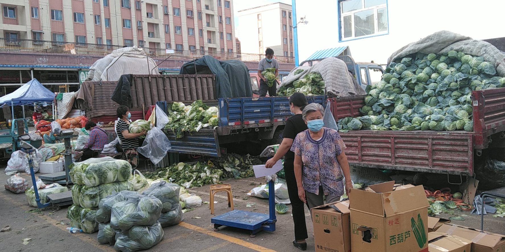 七月、八月气温升高,天气炎热,24节气中的大暑到来,也是地产蔬菜上市的旺季。每天凌晨四、五点钟,蔬菜市场就开始交易了,一辆辆小商贩开着自己的电动车穿梭在市场的各个巷道,配送着他们挑选的各种蔬菜,面对着蔬菜市场车水马龙,川流不息的拉运车辆,无不使我流连忘返。