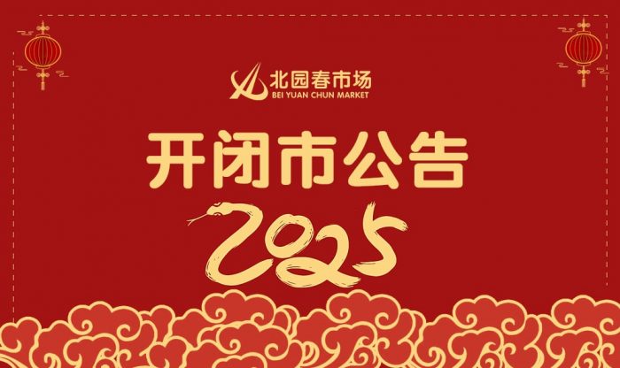 北园春市场2025年春节开闭市通知 尊敬的顾客及商户朋友们: 新春佳节即将来临,根据国家春节放假通…